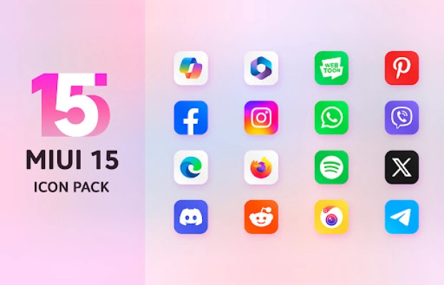 Icon pack inspired by MIUI 15 to customize your device's appearance with a modern and stylish design, reflecting the characteristic aesthetics of the MIUI 15 user interface